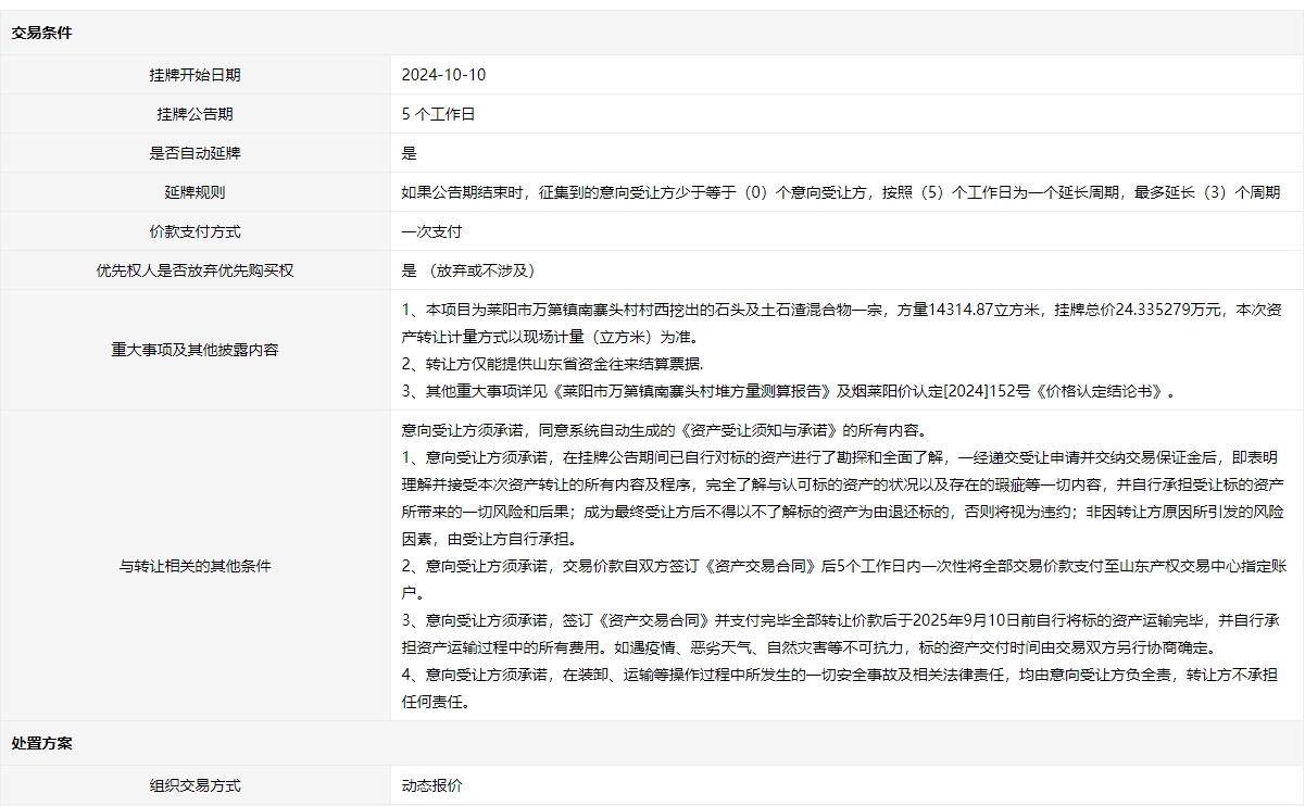 掛牌起止日期:2024年10月10日至2024年10月15日