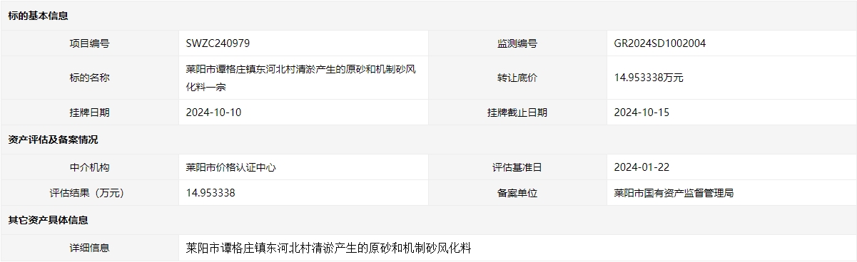 掛牌起止日期:2024年10月10日至2024年10月15日