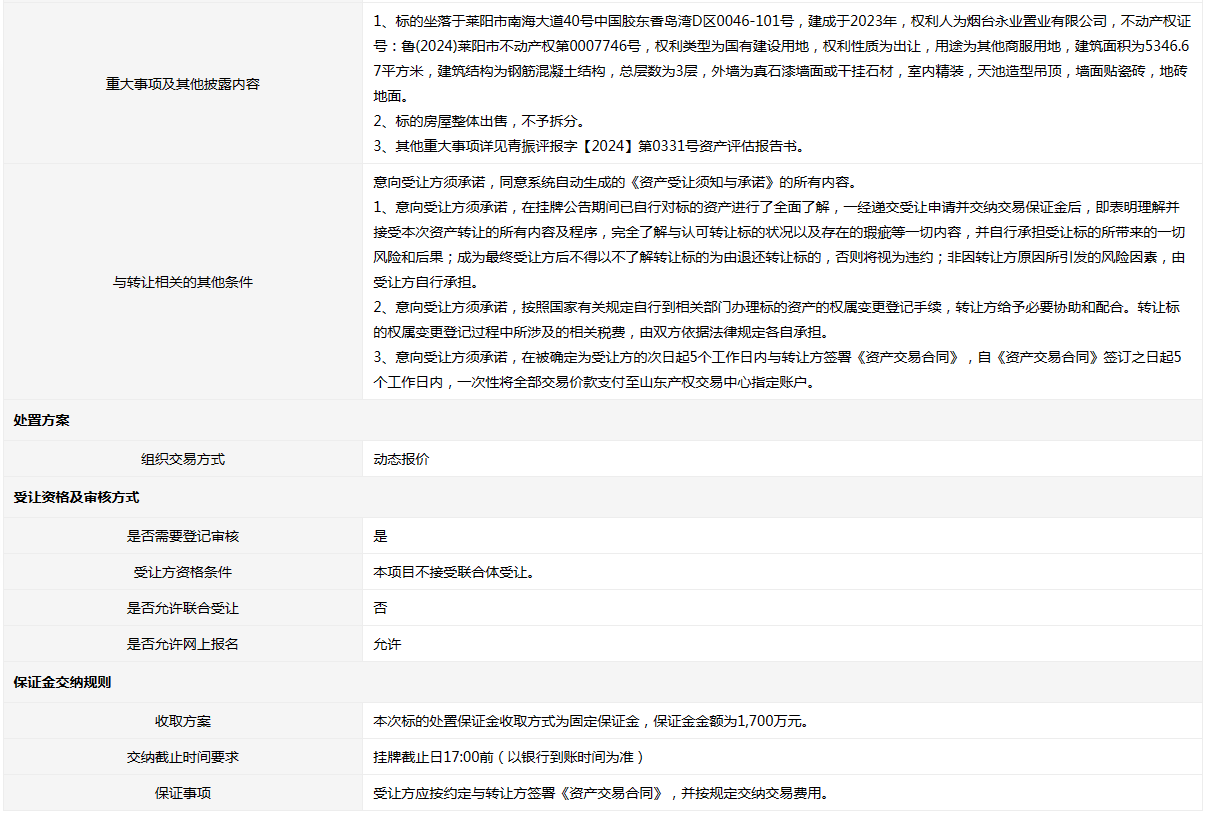 轉(zhuǎn)讓方:煙臺永業(yè)置業(yè)有限公司