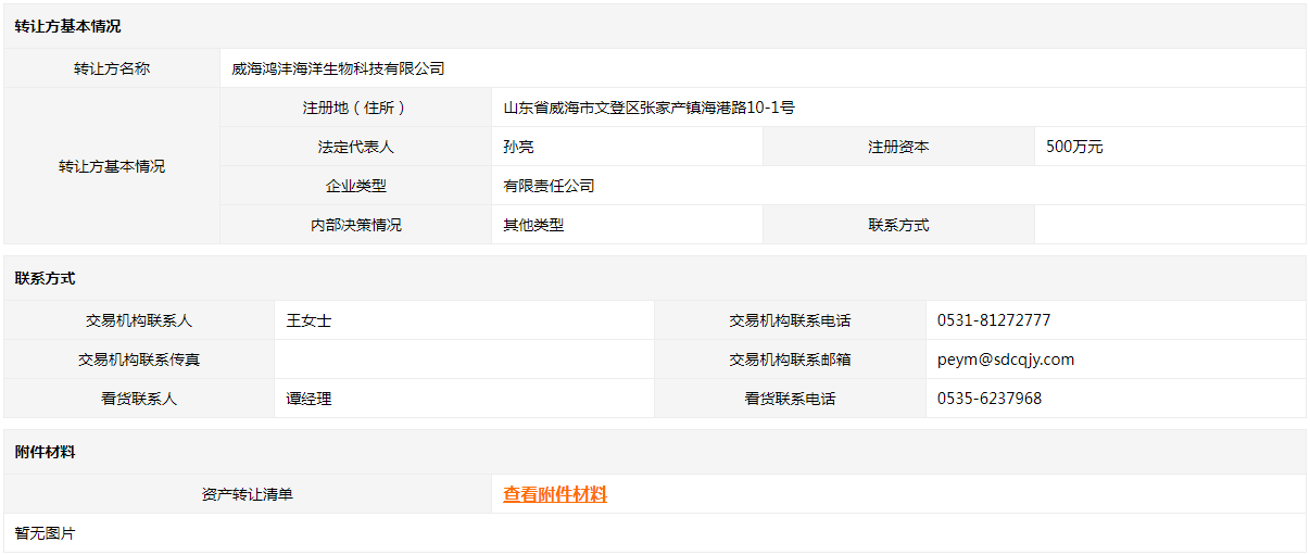 轉讓方:威海鴻灃海洋生物科技有限公司