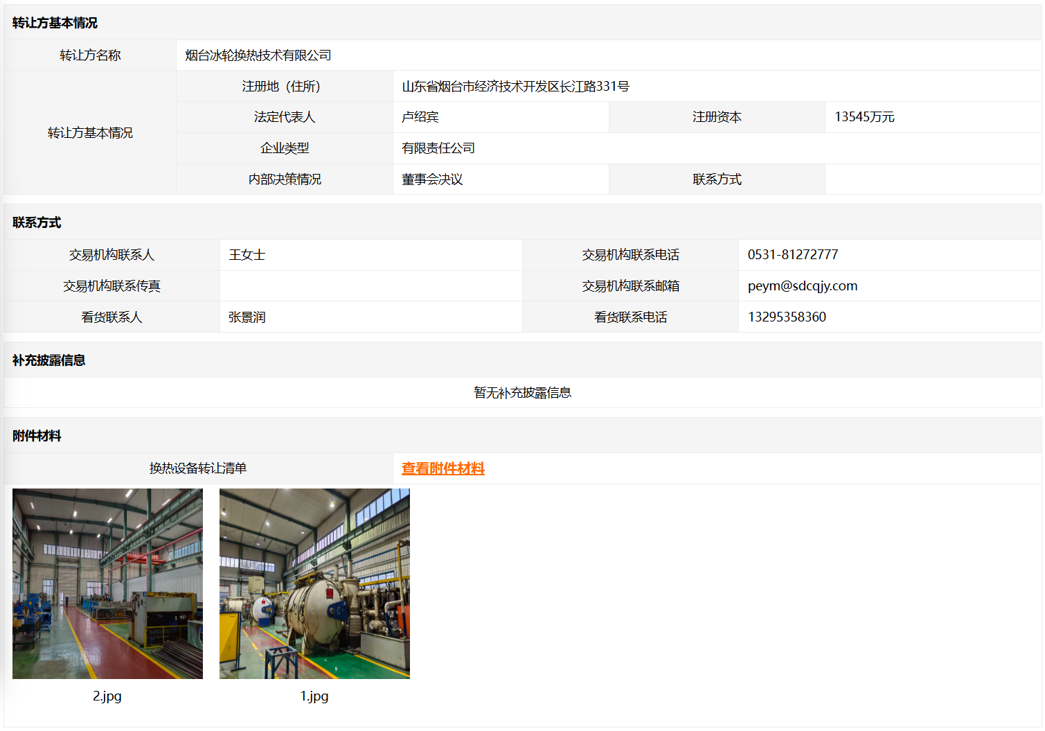 轉(zhuǎn)讓方:煙臺(tái)冰輪換熱技術(shù)有限公司