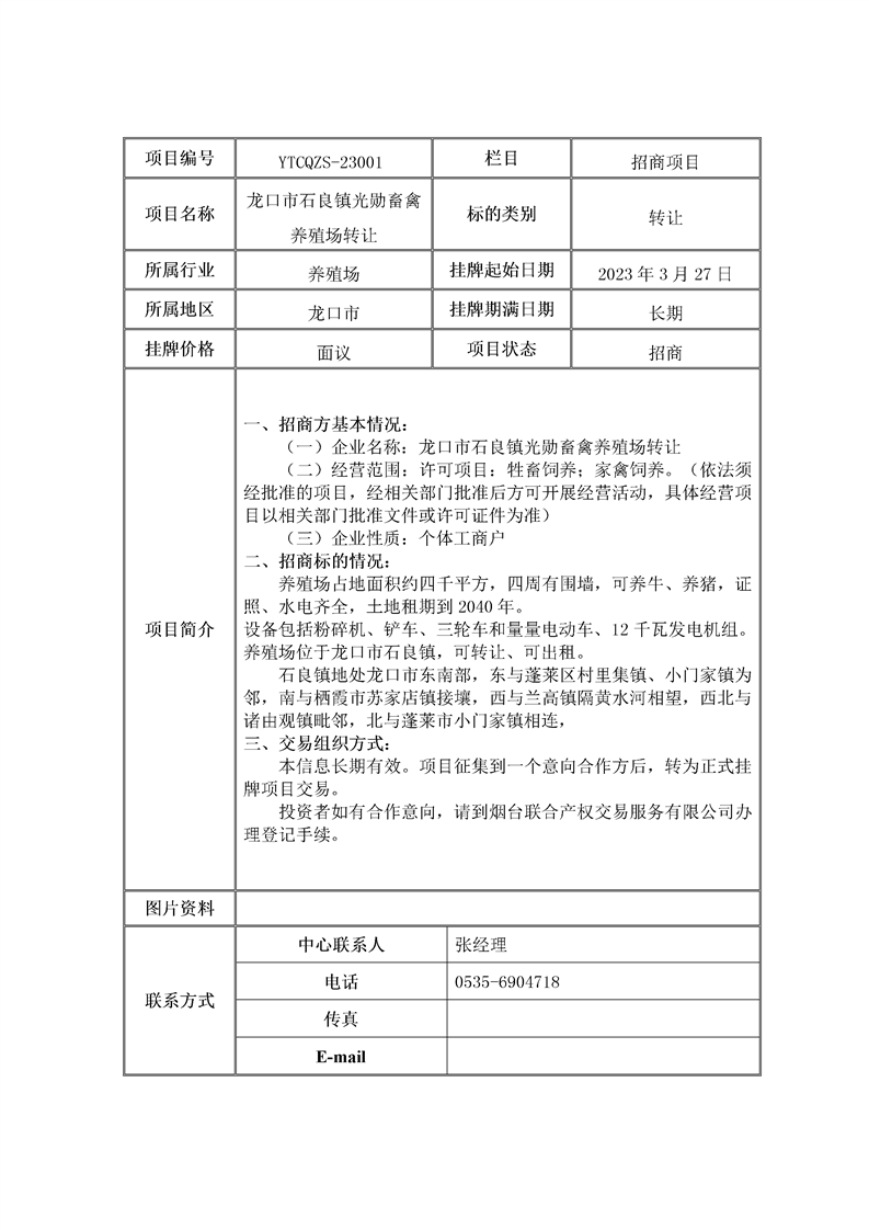 龍口市石良鎮(zhèn)光勛畜禽養(yǎng)殖場轉(zhuǎn)讓