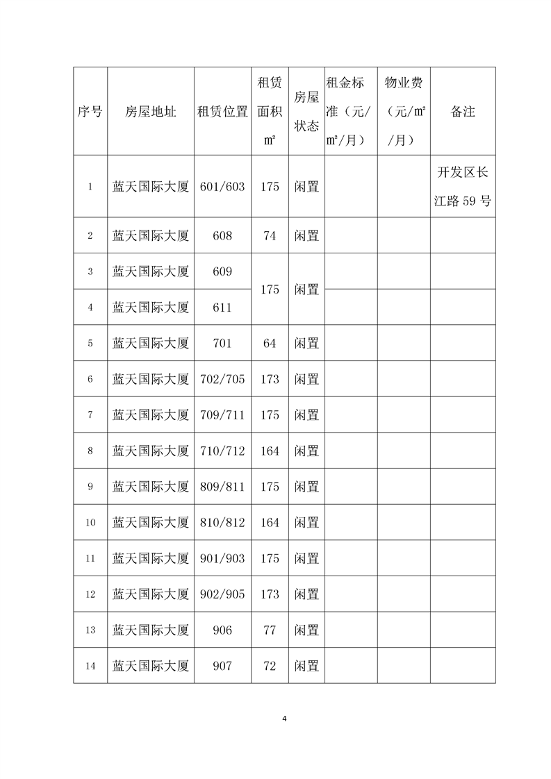 開發(fā)區(qū)長江路59號藍天大廈部分房屋招租