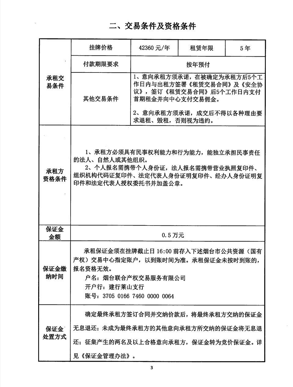 • 保證金支付方式:一次性支付